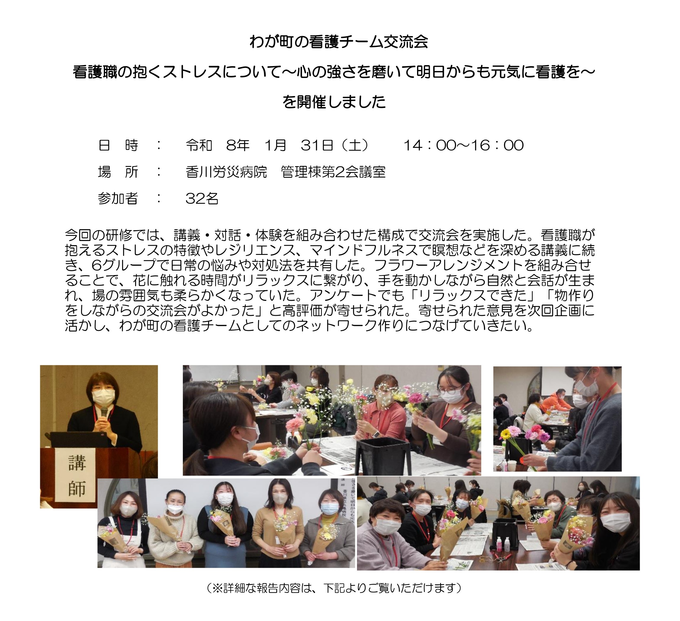 「わが町の看護チーム」交流会 看護職の抱くストレスについて ~心の強さを磨いて明日からも元気に看護を~ |